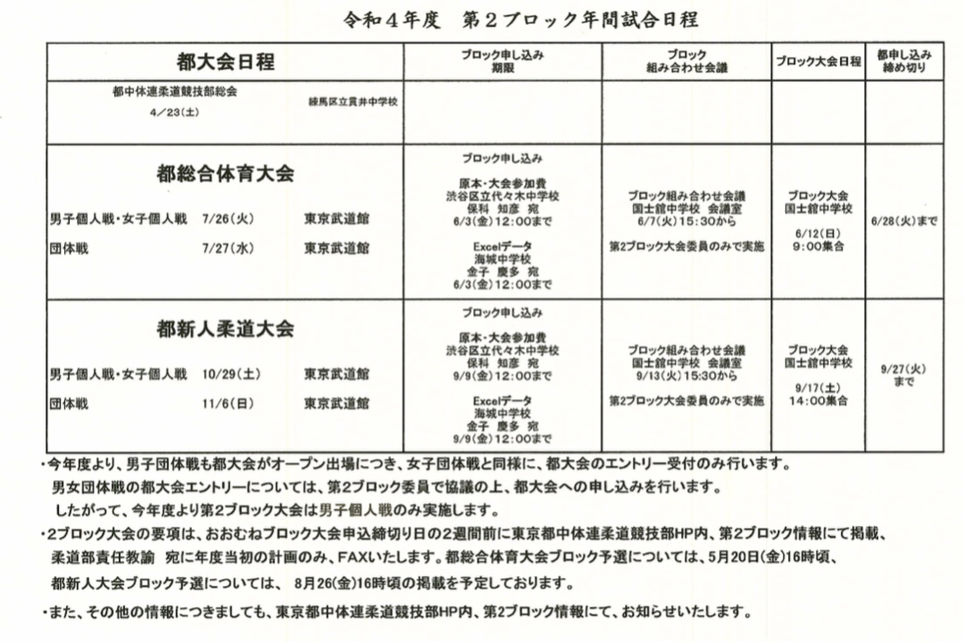 令和4年度 第2ブロック年間試合日程